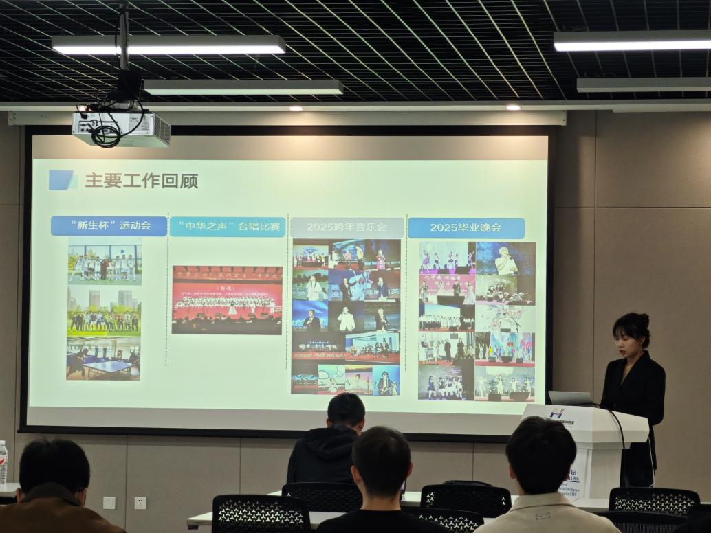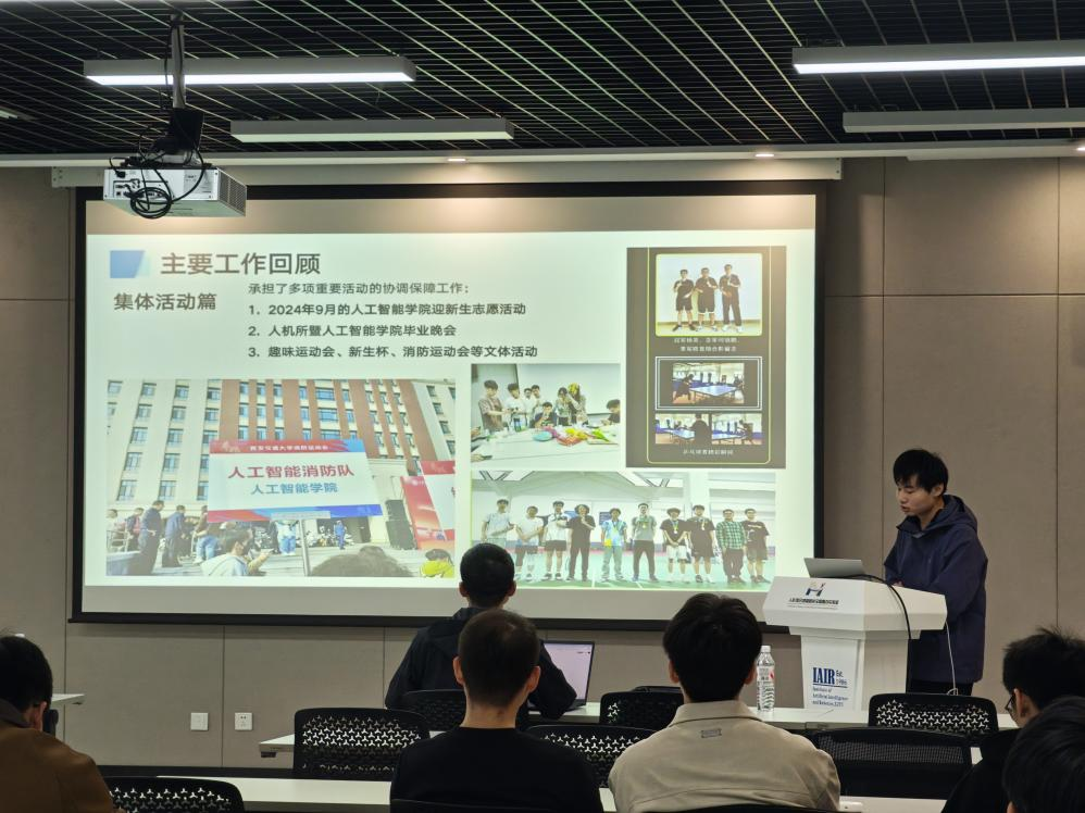 学院常务中心主席团成员陆宇恒简单介绍了常务部门结构和职能,认为常务部门是做爱视频生会的“中枢神经”与“坚实后盾”,同时回顾了前一年的主要工作,并进行了问题反思,认为内部沟通效率有待提升,工作简报形式可更生动。